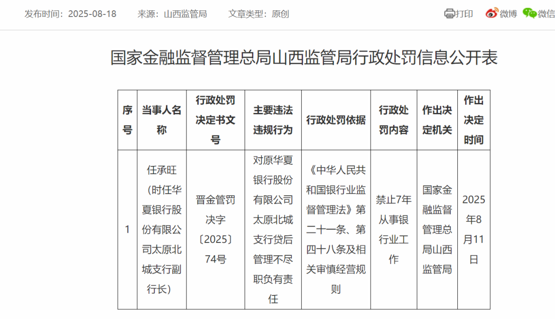 行政处罚决定书文号:晋金管罚决字〔2025〕74号
