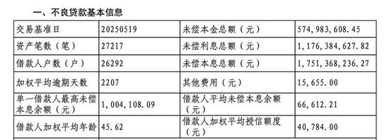 记者注意到,在这7期不良贷款转让项目中,借款人平均未偿本息余额约为47913.41元,借款人加权平均年龄在41岁至46岁。