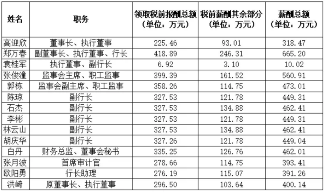 “民生银行管理层薪酬很高,会不会像男足一样待遇太好就没有奋斗的动力了.......”“民生银行行长郑万春年薪最高,为665万,董事长高迎欣年薪318万。对比之下,近年来业绩亮眼的招行行长田惠宇年薪仅420万元。与高管薪水形成强烈对比的是,民生银行业绩下滑、股价低迷,能解释一下吗?”