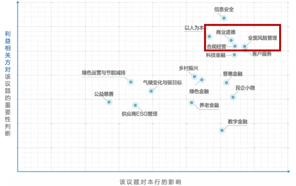 查阅公司近三年以来的ESG报告,“合规经营”议题被反复提及。在2023年的报告中,公司还将“全面风险管理”纳入公司可持续发展实质性议题矩阵,进一步强调合规风险与信用风险、操作风险等其他风险之间的关联,保证银行依法合规运营。