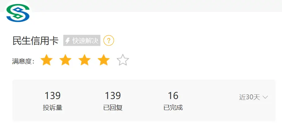 图:黑猫投诉平台上民生银行近30日受投诉情况