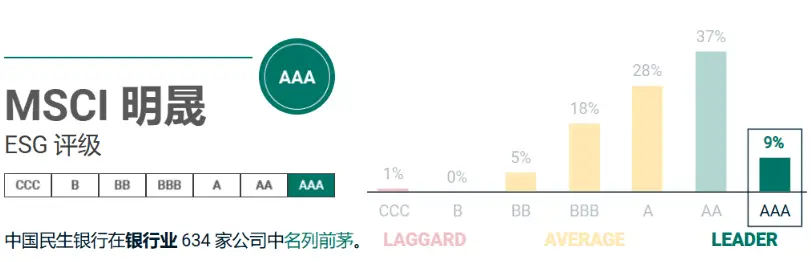 国际上,以MSCI(明晟)评级为例,民生银行ESG评级连续三年提升,在最新一轮的评级调整中,民生银行获评AAA级。
