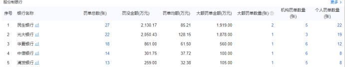 2025年前2个月以来,民生银行罚单规模达2410.17万元,位列12家全国性股份制商业银行第一名。