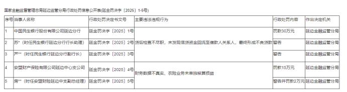 仅仅时隔4天之后,2月18日,国家金融监督管理总局网站显示,民生银行股份有限公司延边分行再次因为信贷业务违规,贷款三查未尽职,被监管层开出30万元罚单。