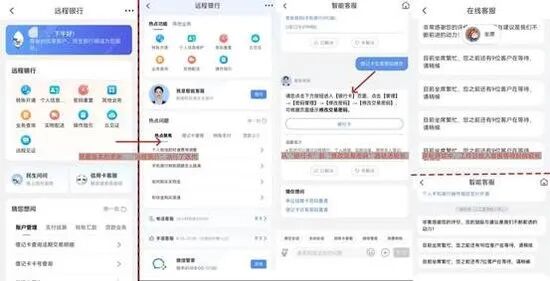 客服互动方面,民生银行App各个频道均能找到客服入口,重要功能触点的客服覆盖率较高(尚未进行差异化匹配)。用户可以从频道入口进入“远程银行”,整合了热点功能、热点问题、智能客服、电话客服等服务(随着App更新也进行了迭代)。