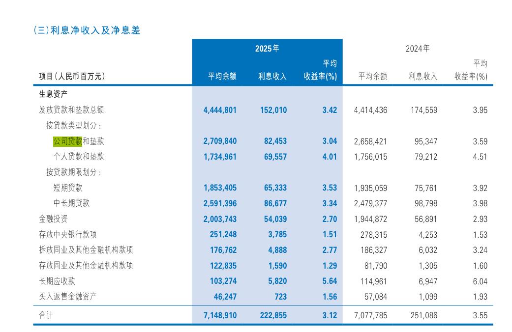 不过,虽然2025年民生银行的公司贷款和垫款的规模有所增长,但是由于收益率大幅下滑,相关收入也大幅下跌。