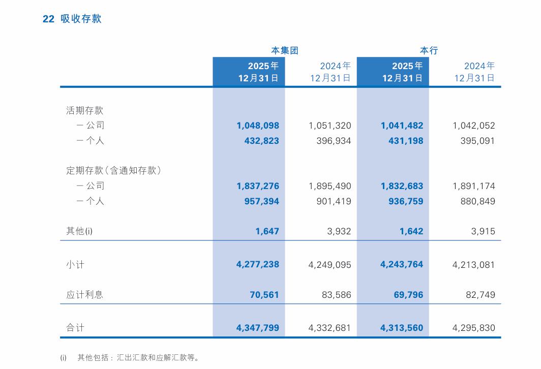 其中,2025年末,民生银行公司活期存款余额10480.98亿元,较2024年末减少32.22亿元;公司定期存款(含通知存款)余额18372.76亿元,较2024年末减少582.14亿元。