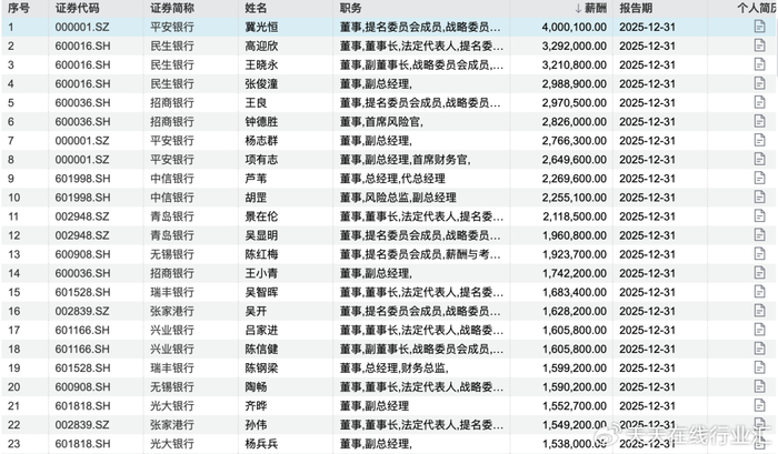 与股份制银行相比,国有大行的董事、董事长级别,2025年薪酬基本在百万元以下,多在90万元水平。
