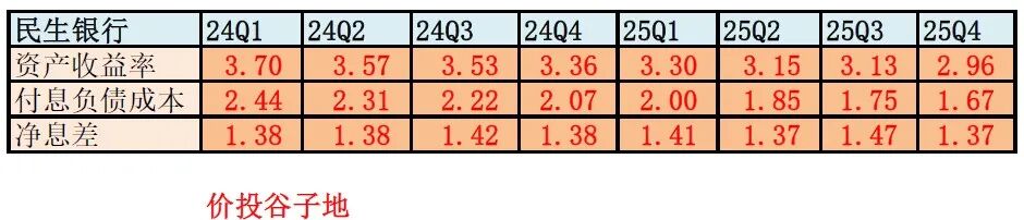 从图1中我们可以看到,资产收益率整体下降了43bps,从3.55%降到3.12%。这是什么水平呢?2025年股份行龙头招商银行的总资产收益率是3.04%。民生银行的资产收益率并不比风控著称的招行高太多。