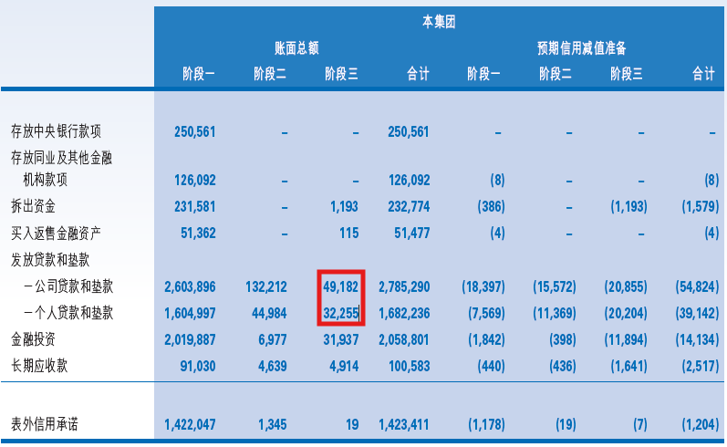 这张图我从2023年年报点评就开始跟踪,连续3年问题没有明显改善。从图2我们看到,公司贷款+个人贷款第三阶段的资产总额=491.82+322.55=814.37亿,比2024年的869.91亿下降了55.54亿,而不良贷款认定只有661.54亿,存在152.83亿的认定缺口。认定缺口虽然有所收窄,但是金额依然较大。