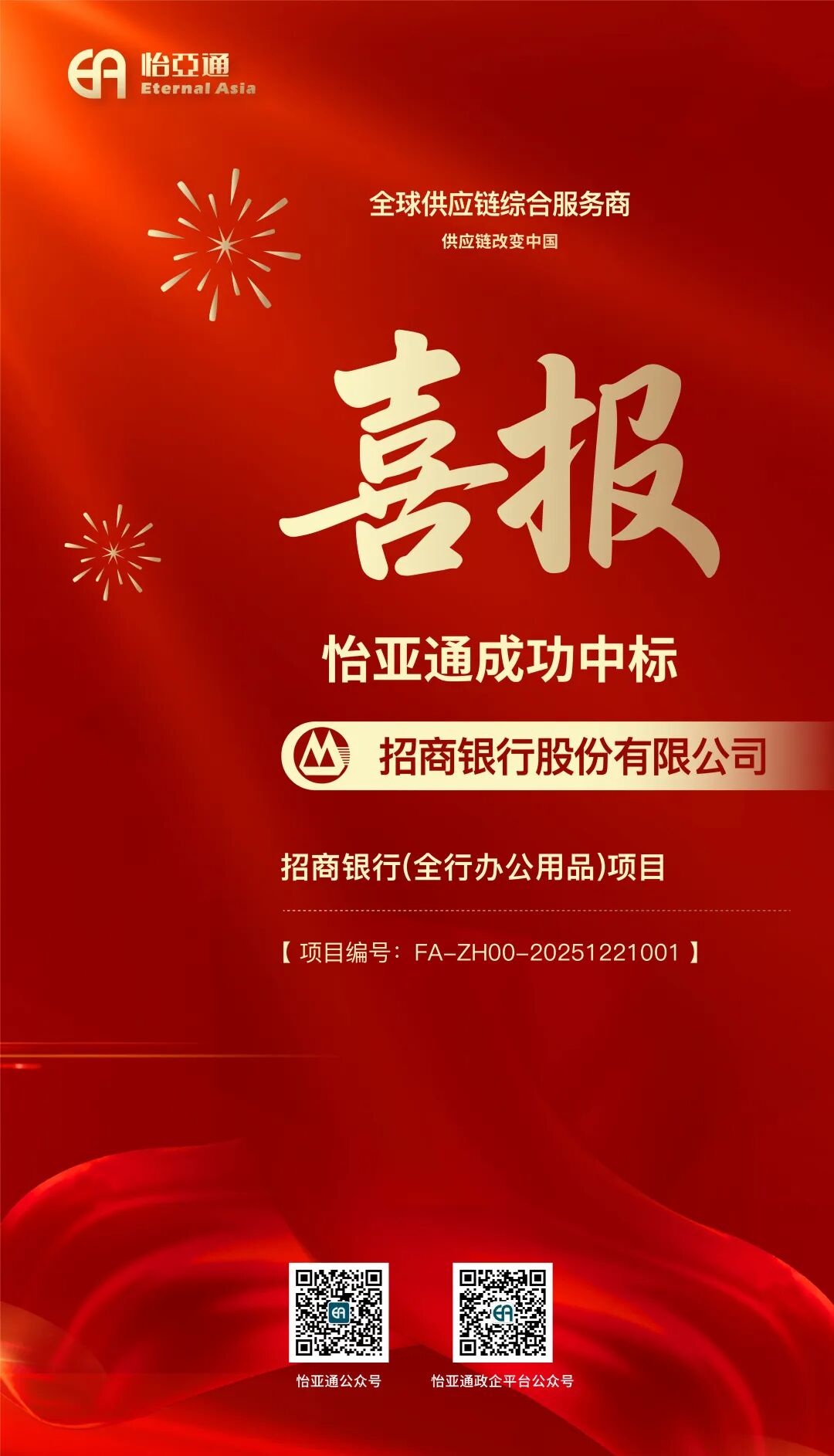 近日,怡亚通凭借强大的供应链整合优势和专业的采供服务能力,成功中标招商银行2026-2028年全行办公用品项目。