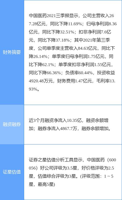中国医药主营业务:医药领域的生产、加工和贸易,主要包括:药品生产与销售、药品/医疗器械的分销与直销、药品/医疗器械的贸易代理、工程施工和其他技术服务业务等。