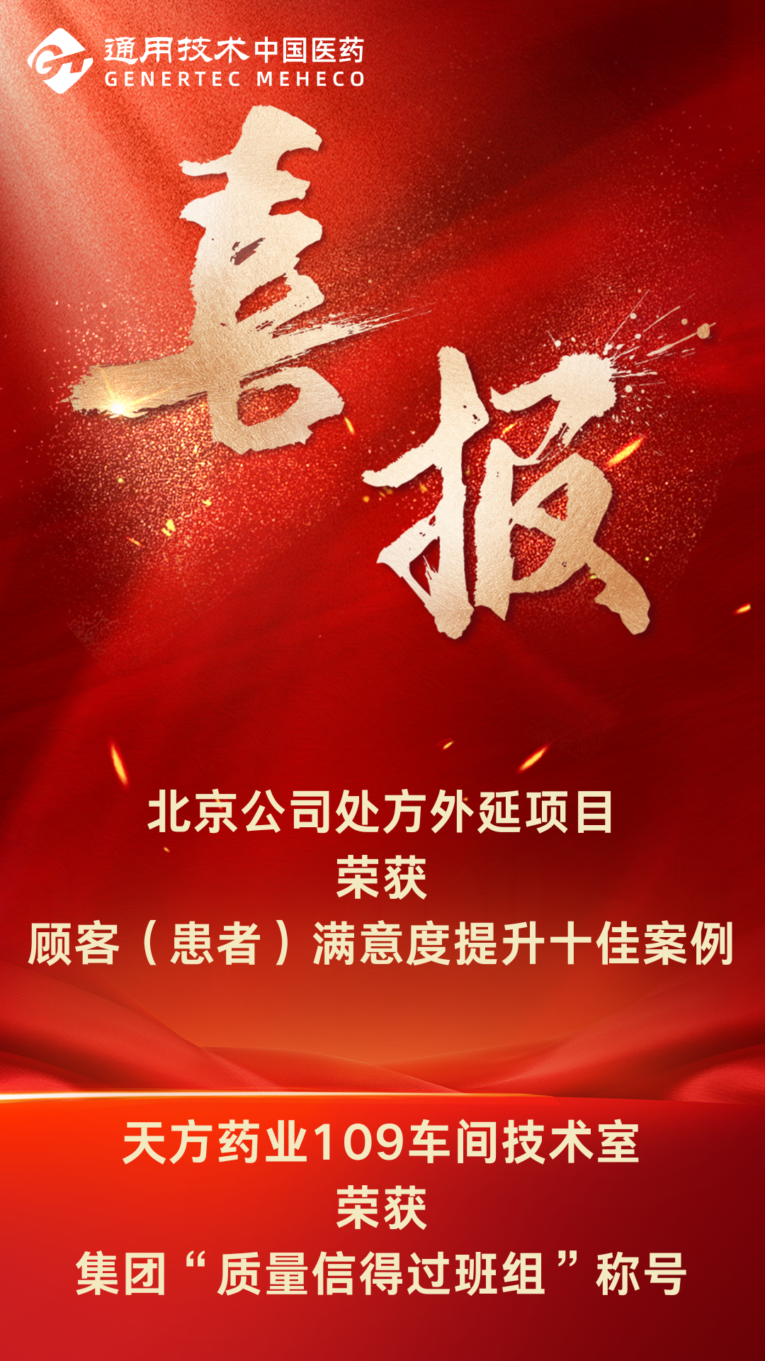 通用技术中国医药所属北京公司的“北京大学人民医院处方外延项目”和“天方药业109车间技术室”分别荣获“顾客(患者)满意度提升十佳案例”和“质量信得过班组”荣誉。