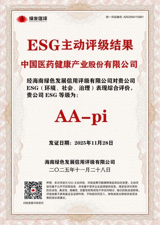 近日,绿发信评发布A股上市公司ESG主动评级结果,通用技术中国医药通过强化合规运营、优化绿色供应链、深化社会责任实践,获AA-pi评级,位列医药流通行业第四名,逐步构建可持续发展的核心竞争力。