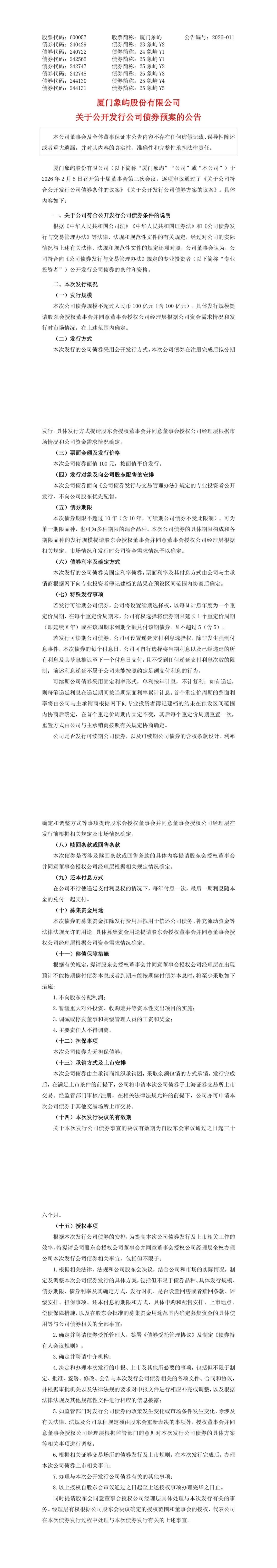 2026年2月5日,厦门象屿(600057)召开第十届董事会第三次会议,审议通过公开发行不超100亿元公司债券预案,拟分期发行、无担保,募集资金主要用于偿还债务及补充流动资金,发行完成后将申请在上交所上市交易。作为千亿级供应链龙头,此次百亿债券发行绝非偶然,既贴合自身业务发展刚需,也折射出供应链行业普遍的资金特性,同时与江苏德龙重整带来的潜在关联风险形成呼应,其背后动因与后续影响值得深入解析。