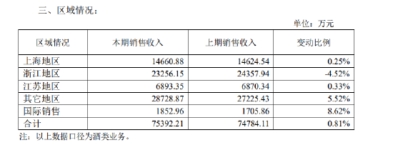 除了中高端产品乏力,华东地区的收入降低,也为古越龙山业绩带来了不小的影响。