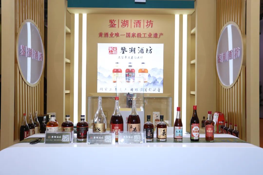 展馆入口两侧是状元红公司和鉴湖酒坊展区,状元红展区通过状元汉服打卡等方式吸引年轻人打卡参与,主推状元及第和红彩绳纹状元红产品,鉴湖酒坊展区则突出鉴湖酒坊是黄酒行业唯一“活着的”国家级工业遗址。
