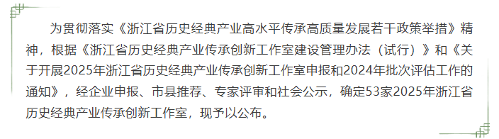 此次入选2025年浙江省历史经典产业传承创新工作室,是古越龙山长期坚持“守正创新”道路上的又一成果。未来,古越龙山将继续肩负起行业责任,以匠心守护千年非遗,以科技赋能产业未来,致力于将绍兴黄酒这张历史经典产业的“金名片”擦得更亮,为浙江省乃至全国历史经典产业的高质量发展贡献更多力量。