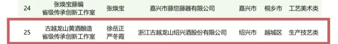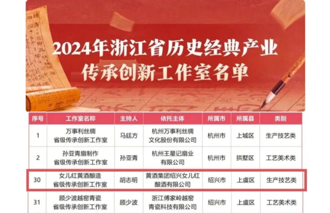 近日,浙江省经济和信息化厅公布2025年浙江省历史经典产业传承创新工作室名单,“古越龙山黄酒酿造省级传承创新工作室”成功入选,这标志着古越龙山在黄酒文化传承与创新方面再次赢得权威认可。