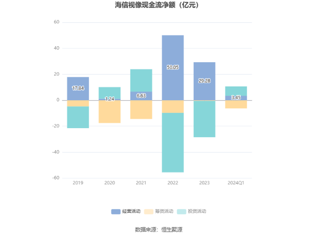 2024年第一季度,公司经营活动现金流净额为3.45亿元,同比下降81.66%,主要系销售节奏及原材料储备策略变化影响;筹资活动现金流净额-6.31亿元,同比减少5902.51万元;投资活动现金流净额7.21亿元,上年同期为5.75亿元。
