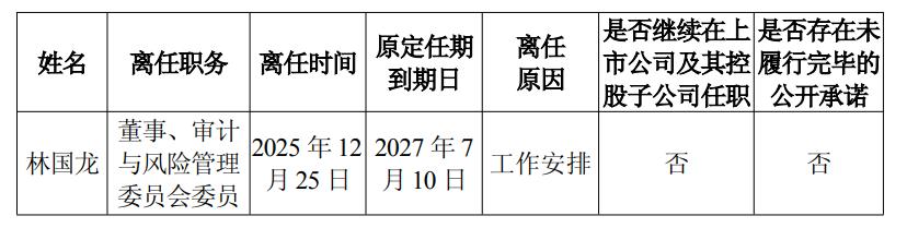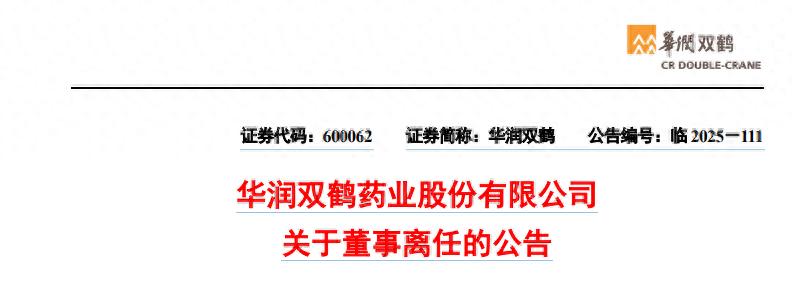 公告显示,华润双鹤药业股份有限公司董事会近日收到林国龙提交的书面辞职报告。林国龙因工作安排原因,申请辞去第十届董事会董事、审计与风险管理委员会委员职务。林国龙离任职务为董事、审计与风险管理委员会委员,离任时间是 2025 年 12 月 25 日,原定任期到期日为 2027 年 7 月 10 日。
