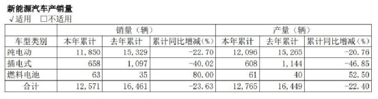 财报数据显示,宇通客车2021年新能源车型销量(包括纯电动、插电式、燃料电池车型)合计为12571辆,较上年销量的16461辆相比,累计同比增减为-23.63%,呈现大幅下滑态势。