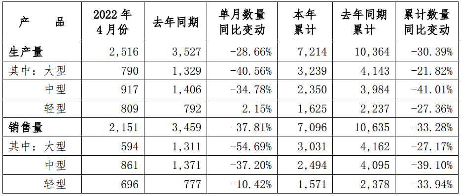 宇通客车股份有限公司2022年4月份产销数据快报如下: