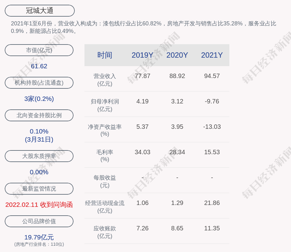 1.冠城大通近30日内北向资金持股量减少9000.0股,占流通股比例减少0.00%;