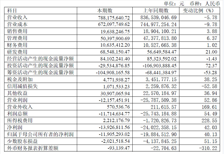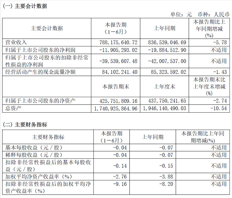 8月20日,凤凰光学股份有限公司发布2024年半年度报告。2024年上半年公司实现营业收入7.88亿元,较去年同期下降5.78%;归母净利润亏损1190.53万元,较去年同期减亏797.92万元。
