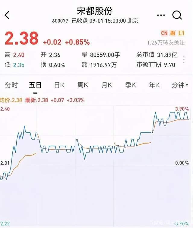 纵观近5日的股票涨幅,我们可以看出,从8月30日至今,宋都股份的股票呈现了逐渐上升趋势。截至9月1日收盘,宋都股份2.38元/股,上涨0.85%,总市值为31.89亿元。