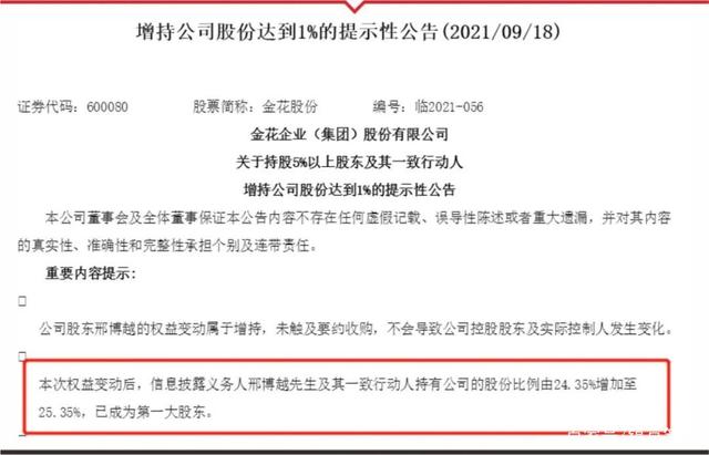 此次拍卖前,金花投资持有上市公司19.14%的股权,其中17.92%通过司法拍卖出去后,位列第二股东之位的邢博越,以17.3%的持股比例得以反超。
