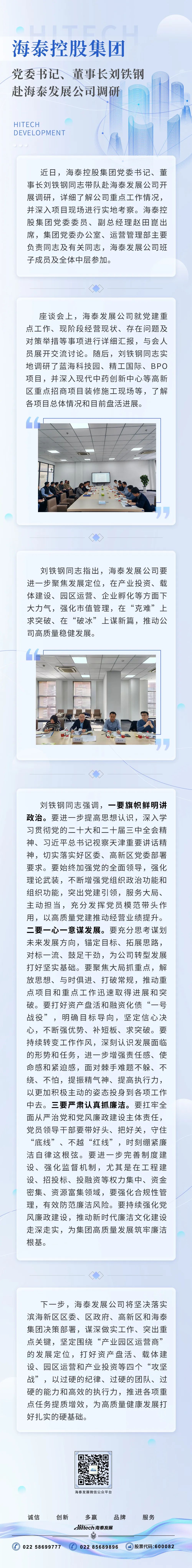 海泰控股集团党委书记、董事长刘铁钢赴海泰发展公司调研