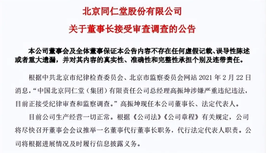 除了多次被质疑质量问题,同仁堂贪腐事件也被爆光。2021年10月,同仁堂原总经理高振坤被双开,随后多位高管纷纷离职。据悉,高振坤不仅牢牢把住豹骨、麝香、羚羊角、牛黄等濒危细料的采购权,利用供给和信息优势牟取私利达1500万余元,还将“自己人”以超常的提拔速度安插到重要岗位,试图将同仁堂打造成一个以自己为核心的“亲友就业基地”,并由妻子出任“地下组织部长”。