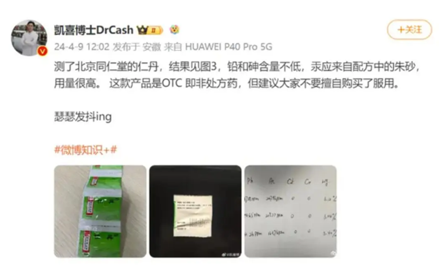 2024年,北京同仁堂仁丹汞含量引发争议,“同仁堂仁丹汞含量超标5万倍”还为此登上微博热搜榜。一位在德国的网友食用在北京同仁堂购买的仁丹后,身体出现了异常,在经过检测后,对比国内药片标准发现同仁堂仁丹汞“超标”5万倍。