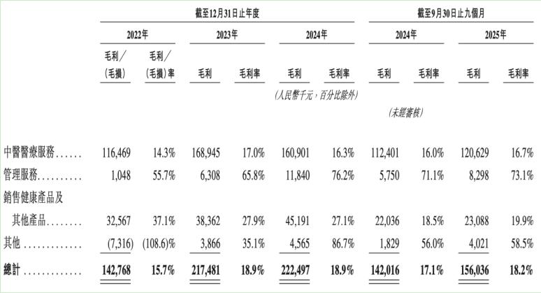 然而,这场三百余年老字号的扩张叙事,并非处处顺遂。头顶“民营中医第一”光环的同仁堂医养,却在盈利能力上垫底集团:2024年毛利率仅18.9%,不及兄弟公司一半;年接诊超300万人次,净利润不足5000万元,平均每位患者贡献不到15.4元。更棘手的是,其IPO已两度递表、两度沉寂,外界对它的真实成色与独立性争议不断。