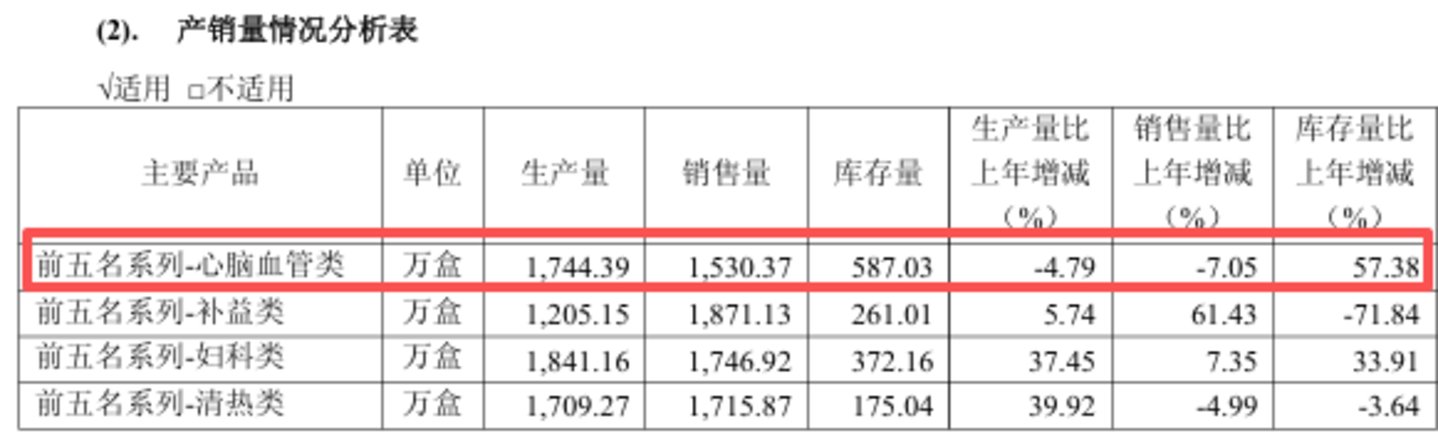 存货端的压力是减值计提的源头之一。截至2025年末,公司存货账面价值达106.17亿元,占总资产比例超34%,库存规模居高不下。其中,核心的心脑血管类产品库存同比激增57.38%,而销量同步下滑7.05%,产销严重失衡。