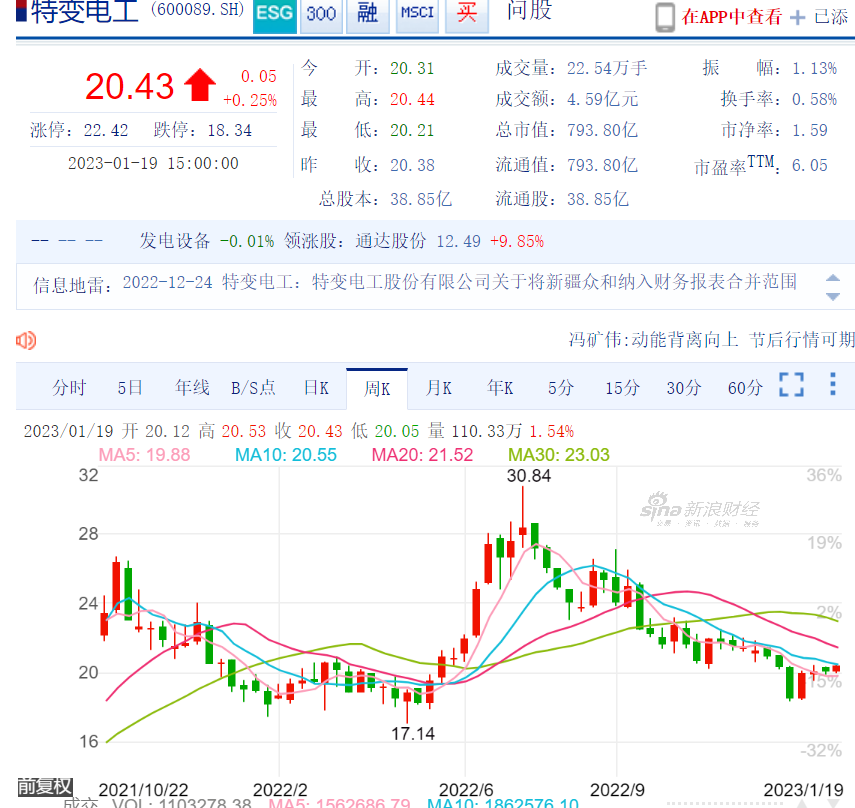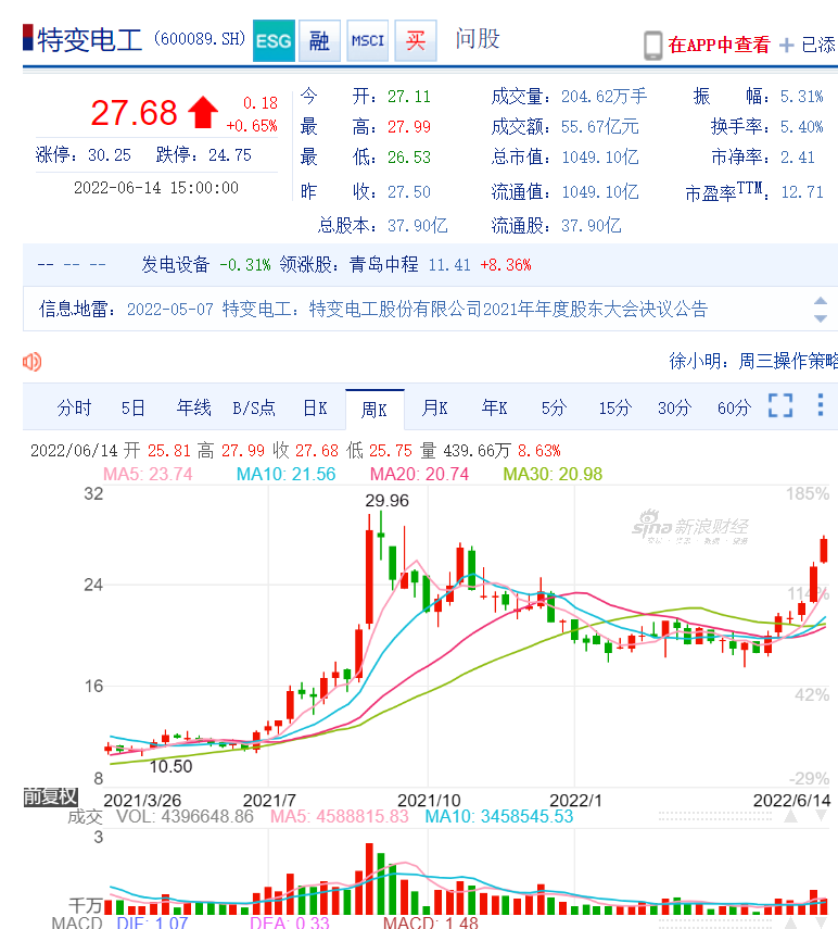 今天先说说早在1997年6月18日就上市的传统输配电领先品牌加近期的光伏强势品牌特变电工。
