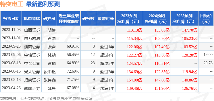 最新盈利预测明细如下: