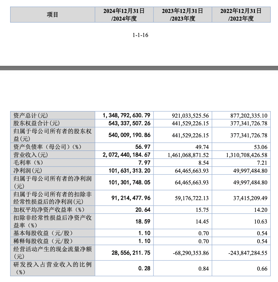 2022年-2024年,宏远股份实现营收分别为13.11亿元、14.61亿元、20.72亿元;归母净利润分别为4999.75万元、6446.57万元、1.01亿元。