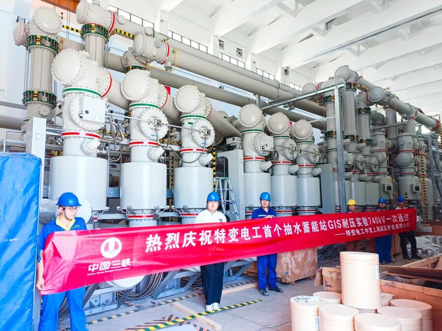 近日,特变电工电装集团衡变上开公司(以下简称“上开公司”)承接的首个抽水蓄能电站项目——浙江天台抽水蓄能电站550千伏GIS项目一次顺利通过740千伏耐压局放试验,助力项目500千伏送出工程进入冲刺阶段。