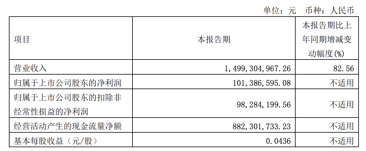 据悉,2023年一季度公司营业收入为14.99亿元,同比增加82.56%,归属于上市公司股东的净利润1.01亿元,归属于上市公司股东的扣除非经常性损益的净利润9828.42万元。