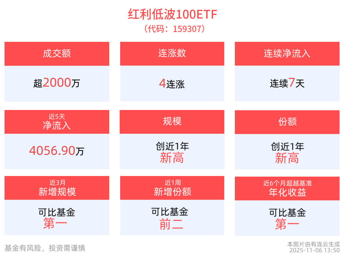 份额方面,红利低波100ETF最新份额达13.99亿份,创近1年新高。