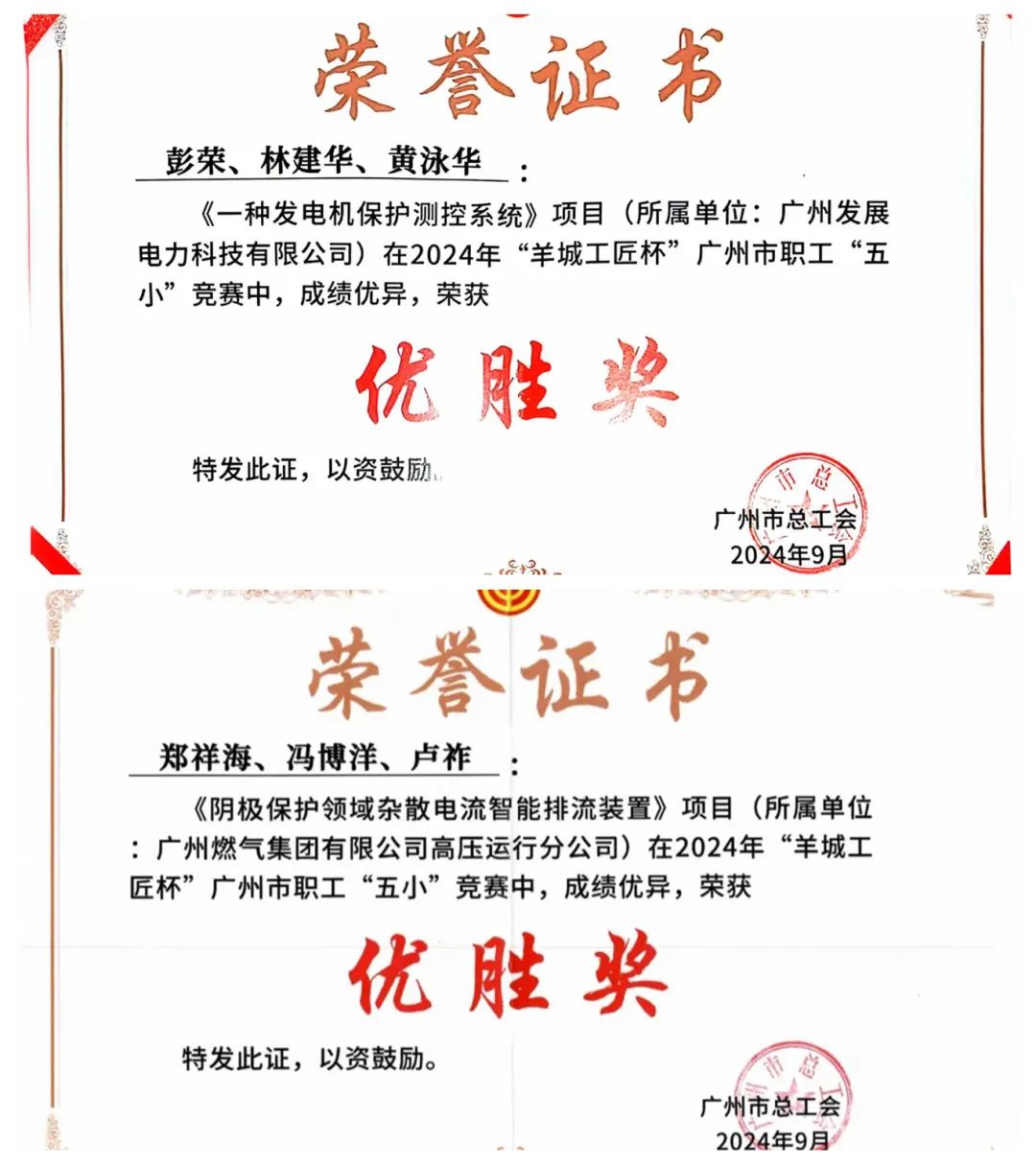 近日,由广州市总工会主办,广州市职工技术交流中心承办的2024年“羊城工匠杯”广州市职工“五小”竞赛圆满落幕。本次竞赛全市各产业领域近150个单位314个项目参赛,广州发展集团工会组织6个项目参赛,5个项目获得奖励。电力科技公司《一种发电机保护测控系统》项目和燃气高压分公司《阴极保护领域杂散电流智能排流装置》项目脱颖而出,以前30名的成绩成功入围决赛,最终荣获优胜奖。发展港口公司《智慧船舶代理业务管理系统》《港口生产经营收费系统》、燃气北区分公司《燃气管网控险工具组合优化与配置形式研究》项目荣获“优秀成果奖”。