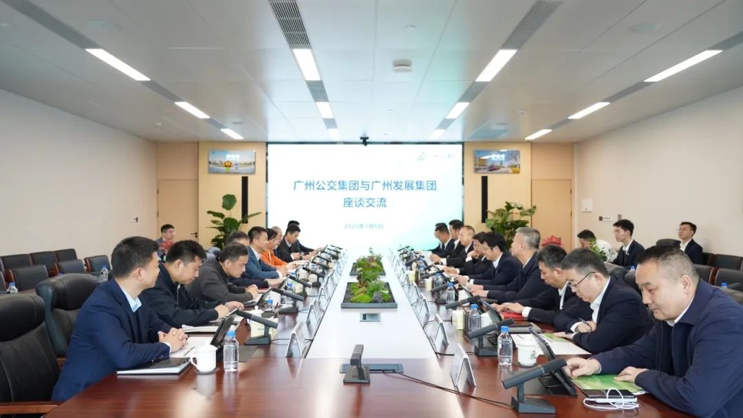 为深化绿色低碳能源与城市公共交通融合发展,2025年3月6日,广州发展集团党委书记、董事长蔡瑞雄率队赴广州公交集团开展业务交流,与公交集团党委书记、董事长覃海宁等领导深入友好会谈。双方围绕综合能源服务、交通出行服务、物流运输、数智化转型等领域展开深入交流,并就未来深化战略合作达成共识。