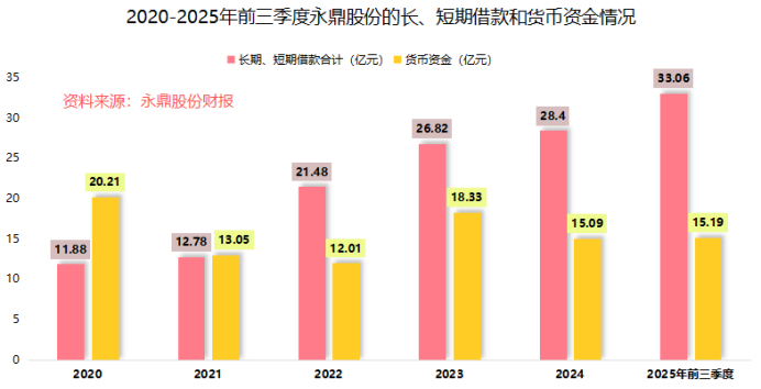 财报揭示了这场赛跑的紧张程度:截至2025年三季度末,公司长短期借款合计33.06亿元,是账上货币资金的近2.2倍。整体资产负债率已增至61.66%,财务结构趋于紧张。