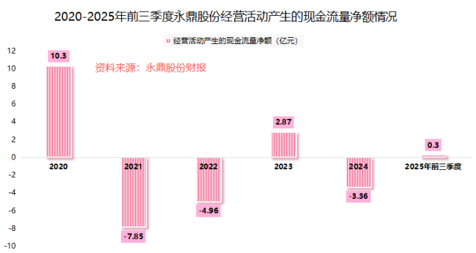 主业盈利的波动,严重侵蚀了公司的“造血”能力,经营活动现金流长期紧张,2025年前三季度仅净流入0.3亿元,甚至不够支付同期利息费用(0.67亿元)的一半。