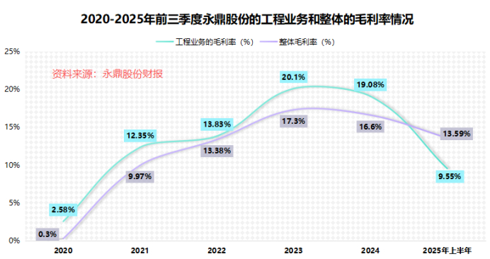 两大主业盈利能力的双双下滑,直接拖垮了公司的整体毛利率。2025年前三季度,永鼎股份整体毛利率降至13.86%,同比下滑4.1个百分点。