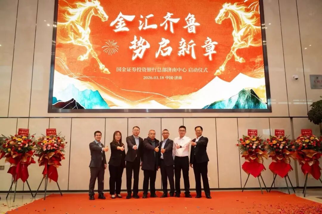 2026年3月18日,国金证券投资银行总部济南中心开业仪式在山东省济南市隆重举行。国金证券董事会秘书周洪刚,总裁助理兼投资银行总部总经理谭军,投资银行总部助理总经理谌超,济南龙奥西路证券营业部负责人王焕文及各条线业务部门相关负责人出席仪式。