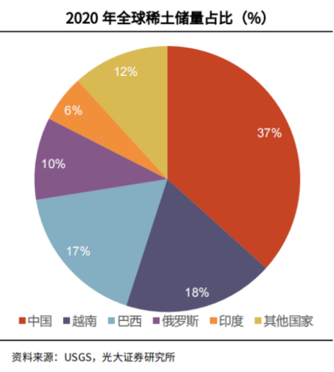 此外,稀土虽不可替代,但在每个领域运用量都不大,成本占比较低,这使得稀土价格向下游传导能力较强。例如,一辆20万元的新能源汽车中,稀土成本约为1000元左右,成本占比仅为0.5%。
