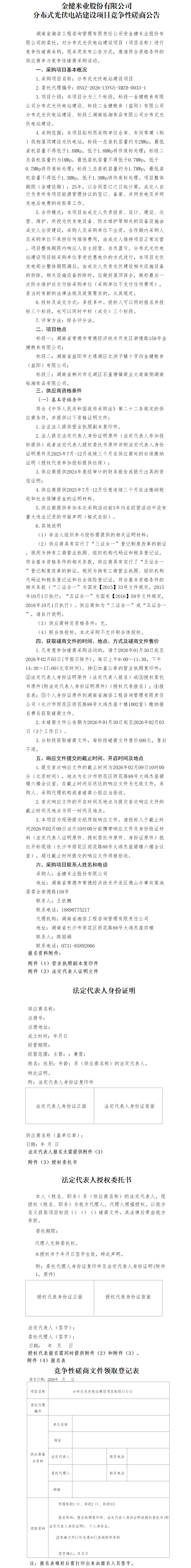 金健米业股份有限公司分布式光伏电站建设项目竞争性磋商公告
